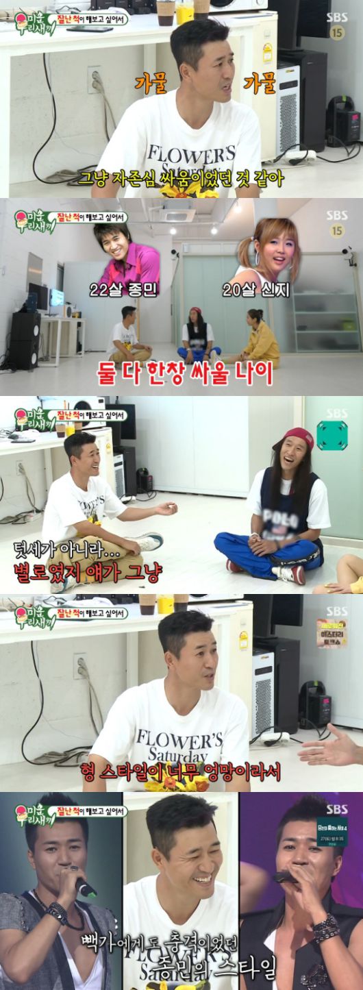 빽가는 "그때 왜 싸운 거냐"라며 궁금해했고, 김종민은 "뭐 때문인지 모르겠다. 많이 싸우니까. 자존심 싸움이었던 것 같다"라며 털어놨다.