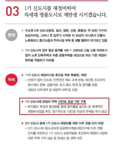 그는 윤 대통령의 후보 시절 공약집을 첨부하면서 "그래서 처음부터 '10만호 공급'이 아니라 '10만호 공급기반 구축'이라고 공약했던 것"이라며 '공약파기'는 무책임한 선동"이라고 강조했다.