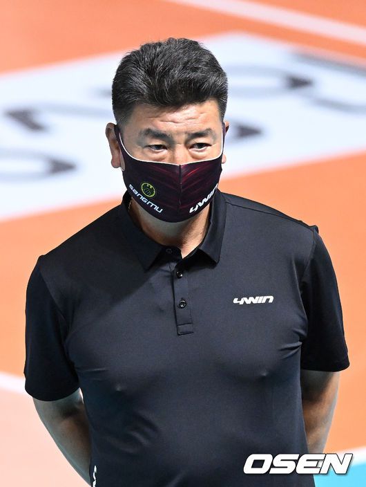 [OSEN=순천, 이대선 기자] 22일 오후 전남 순천 팔마체육관에서 2022 순천·도드람컵 프로배구대회 국군체육부대와 삼성화재의 경기가 열렸다. 1세트 국군체육부대 박삼용 감독이 선수들을 바라보고 있다. 2022.08.22 /sunday@osen.co.kr