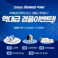 NH농협은행 전남영업본부(본부장 이창기)가 전남 공공배달앱 '먹깨비'와 손잡고 전남 공공배달앱의 성공적인 조기 정착 및 이용 활성화를 위해 8월 20일부터 9월 20일까지 소비자 경품 이벤트를 실시한다.