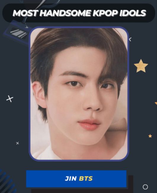 방탄소년단(BTS) 진이 또 다시 '가장 잘생긴 K팝 아이돌' 1위를 차지하며 미의 남신으로서 위용을 과시했다.
