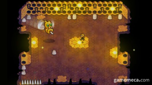 관련 내용은 지난 22일, 에릭 바론 트위터를 통해 공개됐다. 먼저 스크린샷은 전체적으로 황금빛 톤인 동굴 안에 벌집이 줄지어있고, 플레이어 캐릭터가 거대한 벌 보스를 대면한 장면을 담았다. 스타듀 밸리에서도 호평을 받았던 도트 그래픽을 이번에도 잘 살렸음을 확인할 수 있다. 이어서 같은 날 공식 유튜브 채널을 통해 공개된 영상에서는 벌이 윙윙 날아다니는 소리를 표현한 OST를 들어볼 수 있다.