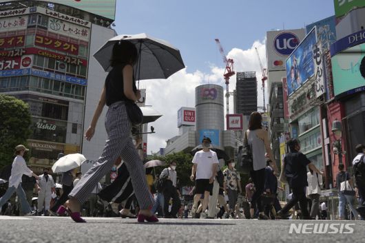 [도쿄(일본)=AP/뉴시스]지난달 25일 일본 도쿄에서 코로나19 감염 방지를 위해 마스크를 쓴 시민들이 횡단보도를 걷고 있다. 2022.08.24. |