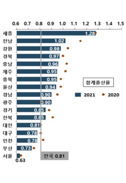 2020년 0.75명보다 더 떨어져 역대 최저를 나타냈다.
