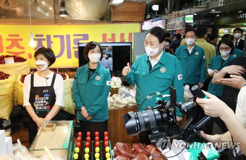 윤석열 대통령, 전통시장에서 '엄지 척' |