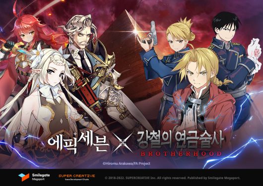 스마일게이트 메가포트(대표 장인아)가 서비스하고 슈퍼크리에이티브(김형석, 강기현 공동대표)가 개발한 모바일 RPG ‘에픽세븐’이 일본의 유명 IP(지식재산권) ‘강철의 연금술사 BROTHERHOOD’와 신규 콜라보레이션을 진행한다고 26일 밝혔다.