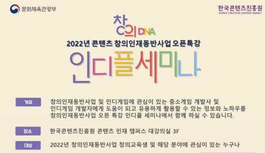 ◆ 한국인디게임협회, ‘2022 인디플 세미나’ 23일 개최