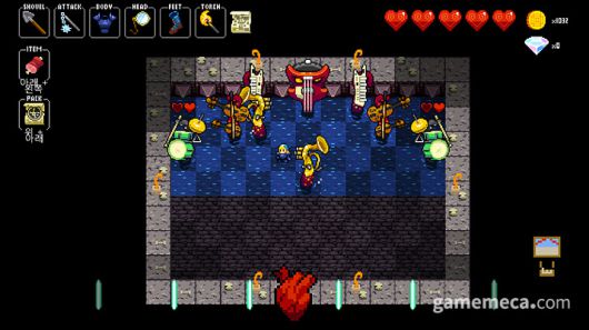 ▲ 박자와 무빙, 장비와 스킬을 모두 신경써야한다 (사진출처: 크립트 오브 더 네크로댄서 스팀 페이지) |