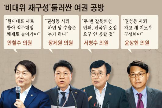 당 주류는 새 비대위 구성을 밀어붙일 것으로 보인다. 권 원내대표는 기자들과 만나 “의총을 통해 의원들의 총의가 모이면 따라야 하는 게 고위 당직자의 책무다. 본인 철학에 따라 움직여서는 안 된다”고 말했다. 전국위 소집에 서 의원이 협조해야 한다는 것이다. 그는 또 이날 사퇴 요구가 잇따른 상황에도 주변에 “욕을 먹더라도 소임을 다할 것”이라며 “다수 의원도 안정을 원하고 있다”고 말한 것으로 알려졌다.