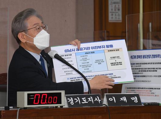 작년 10월 20일 당시 이재명 경기도지사가 국회 국토교통위원회의 국정감사에서 의원 질의에 답변하고 있다. /국회사진기자단 |