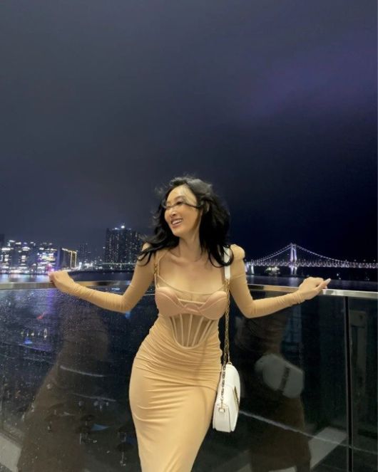공개된 사진 속 화사는 바람을 맞으며 포즈를 취하고 있는 모습이다. 화사가 입은 누드톤 드레스는 복부가 여러 개의 끈으로 연결되어 있어 유니크한 느낌을 자아낸다.