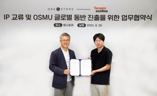 (서울=연합뉴스) 오규진 기자 = 원스토어는 테라핀스튜디오와 '지적재산(IP) 교류 및 원 소스 멀티 유스(OSMU) 글로벌 동반 진출을 위한 업무협약'을 체결했다고 31일 밝혔다.