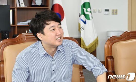 이준석 국민의힘 전 대표가 29일 오전 대구 달성군의회를 방문해 최재훈 달성군수와 면담하고 있다./사진=뉴스1 |
