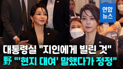 (서울=연합뉴스) 윤석열 대통령의 부인 김건희 여사가 해외 순방 당시 착용했던 장신구가 재산 신고 내역에서 빠져있다는 야당의 주장에 대통령실이 "일부는 지인에게 빌렸고 일부는 소상공인에게 구입했다"는 취지의 설명을 내놨습니다.