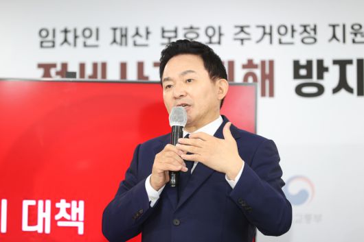 원희룡 국토교통부 장관이 1일 서울 정부청사에서 전세사기 피해방지방안 대책을 발표하고 있다. 국토교통부 제공 |