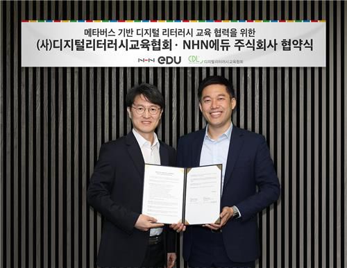 [NHN에듀 제공. 재판매 및 DB 금지] ▲ NHN에듀는 디지털리터러시교육협회와 메타버스 플랫폼 기반 디지털 리터러시 교육 사업 협력을 위한 업무협약(MOU)을 체결했다고 1일 밝혔다. (서울=연합뉴스) ▶제보는 카카오톡 okjebo▶연합뉴스 앱 지금 바로 다운받기~▶네이버 연합뉴스 채널 구독하기<저작권자(c) 연합뉴스, 무단 전재-재배포 금지>