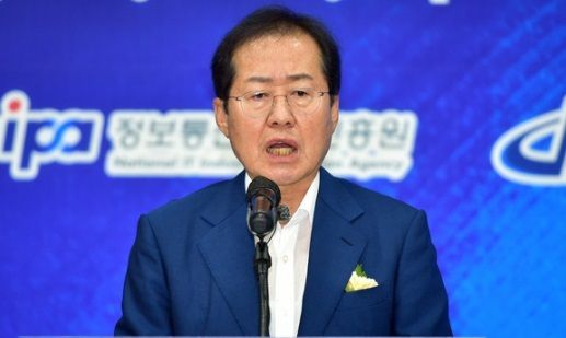 홍준표 대구시장이 지난달 31일 오후 대구 수성구 SW융합기술센터에서 열린 '대구 디지털 혁신 비전 선포식'에서 인사말을 하고 있다. 대구=뉴시스 |
