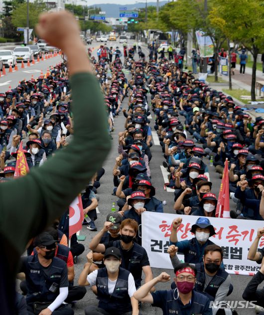 건설노조는 쟁의행위 찬반 투표를 벌인 결과 조합원 91.2%가 파업에 찬성해 이날 전국 13개 지부에서 동시 결의대회를 열었다.