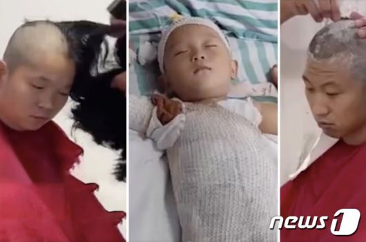 (서울=뉴스1) 박형기 기자 = 중국에서 화상을 입은 아이에게 피부를 이식하기 위해 부모 모두가 삭발해 중국인들을 감동케 하고 있다고 홍콩의 사우스차이나모닝포스트(SCMP)가 2일 보도했다.