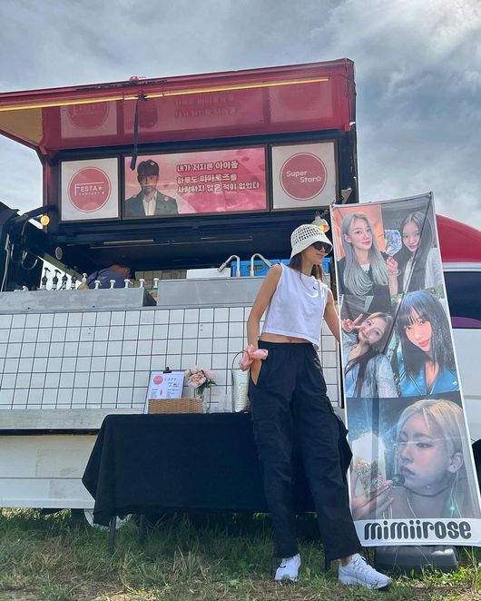 공개된 사진 속 서하얀은 신인 걸그룹 미미로즈의 또 다른 뮤직비디오 촬영 현장을 응원하기 위해 출동했다. 서하얀은 남편 임창정이 보낸 커피차를 인증하면서 남편의 몫까지 최선을 다하는 회사 대표 모습을 보였다.