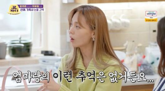 선예는 어머니에 대해 "어머니에 대한 기억이 없다. 다섯 살까지는 가끔 보러 오셨다는데 제가 너무 어리니까 기억이 없었다"고 말했다.