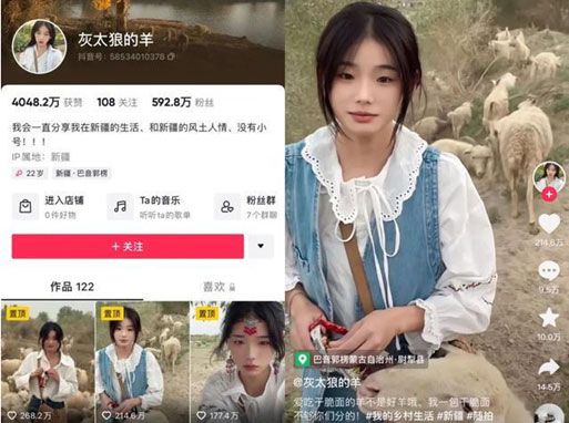 중국의 소셜네트워크 서비스(SNS)인 더우인(틱톡의 중국 서비스명)에서 470만명의 팔로워를 보유한 ‘양치기 소녀’가 청순하고 순수한 이미지와 함께 또 다른 반전 매력으로 화제가 되고 있다.