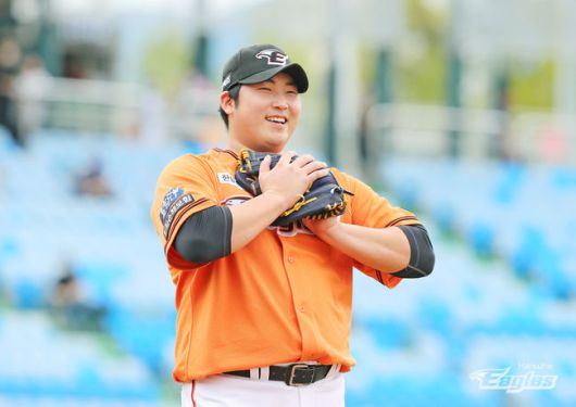데뷔 첫 완투승을 거둔 김민우가 활짝 웃고 있다. /한화 이글스 제공 |