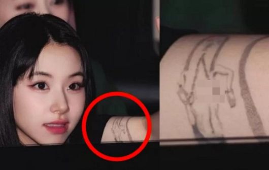 채영이 팬들을 향해 손을 흔들던 중 찍힌 것으로 보이는 사진에는 채영의 팔뚝 안쪽에 나체 여성이 긴 쇠사슬을 목과 팔에 두르고 있는 그림이 새겨져 있어 눈길을 끌었다.