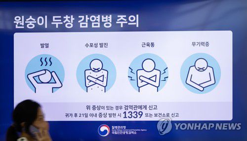 정부의 원숭이두창 대응지침에 따르면 발열 발생 후 발진이 나타나기까지는 통상 1∼4일이 소요된다.