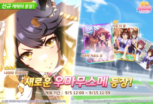 5일 ㈜카카오게임즈(대표 조계현)는 ㈜사이게임즈(대표 와타나베 코우이치)가 개발한 모바일 게임 ‘우마무스메 프리티 더비’에 신규 육성 우마무스메 ‘나리타 브라이언’을 업데이트했다고 밝혔다.