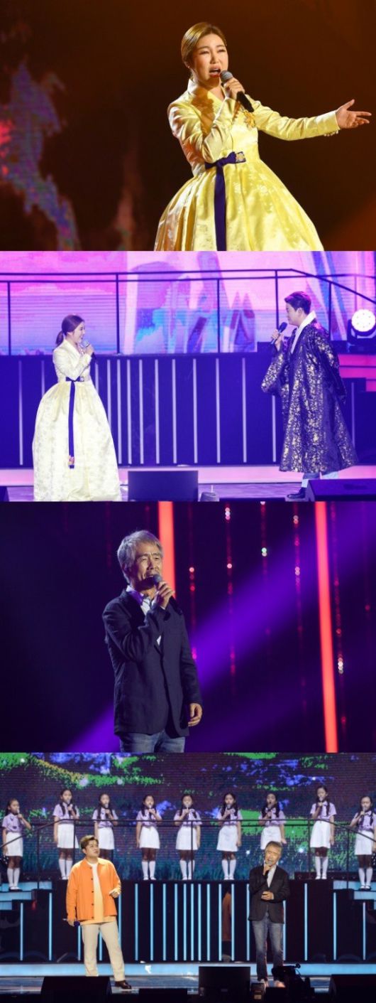 송가인도 김호중과 사상 첫 듀엣 무대로 호흡했다. 곱게 한복을 차려 입은 송가인은 ‘비 내리는 금강산’ 무대로 국악의 진수를 보여줬고 김호중은 “국악과 성악이 함께 하면 어떨까 하는 생각에 송가인에게 연락했는데 10초 만에 OK 답장이 왔다”며 고마워했다. 두 사람은 함께 ‘한 오백 년’을 함께 부르며 역대급 크로스오버 무대로 박수를 이끌어냈다.
