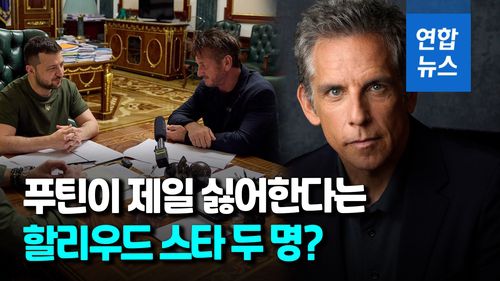 (서울=연합뉴스) 지난 2월 러시아의 우크라이나 침공 이후 우크라이나를 방문해 공개적으로 지지를 표명했던 미국 할리우드 스타 숀 펜과 벤 스틸러가 나란히 러시아 제재 명단에 포함됐습니다.