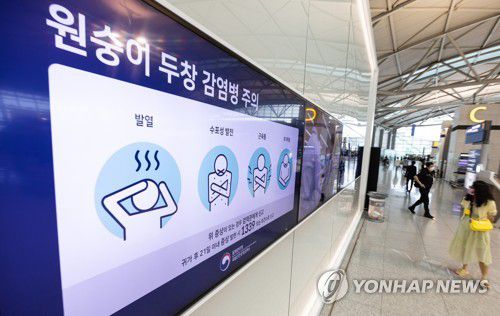 (영종도=연합뉴스) 황광모 기자 = 지난 4일 오후 인천공항 출국장 내 전광판에 원숭이 두창 감염에 대한 안내가 표시되고 있다. 2022.9.4 hkmpooh@yna.co.kr |