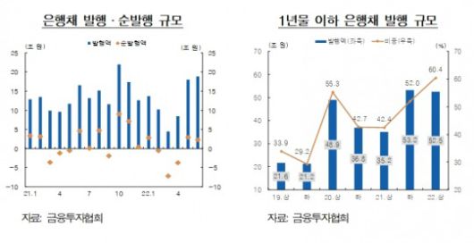 시장금리 상승 국면 채권투자자 선호에 부응하는 과정에서 은행채 발행만기의 단기화가 심화되고, 변동금리부채권(FRN)의 발행도 확대됐다.