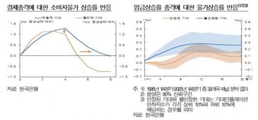 한은은 "기대가 불안정한 경우 안정된 경우에 비해 경제충격에 대한 실제 물가상승률의 반응이 더 크고 오래 지속된다"며 "또 임금상승률이 꾸준히 높아지고 있는 상황에서 기대인플레이션까지 불안정해지면 물가-임금간 상호작용이 강화되면서 인플레이션의 지속성이 확대된다"고 분석했다.