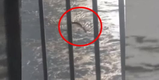영상에는 정체를 알 수 없는 길쭉한 형태의 무언가가 물살을 가르며 강에서 헤엄치는 모습이 담겼다.