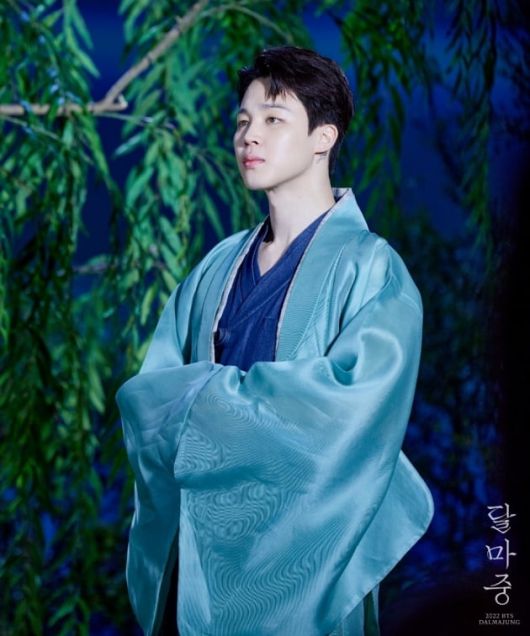 당시 지민은 파스텔 톤의 베이지 색상과 회색의 조화가 돋보이는 한복을 착용해 짙은 흑발과 깨끗한 우유빛 피부가 어우러지며 우아하고 단아한 한복 자태를 뽐내 단숨에 팬들의 시선을 사로 잡았다.