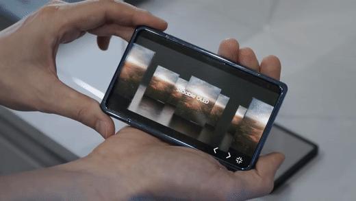 측면 디스플레이를 펼쳐 갤럭시Z폴드나 태블릿처럼 넓게 사용할 수 있는 스마트폰도 선보였다. 갤럭시Z폴드는 좌우를 접는 방식이지만 플렉서블 디스플레이는 화면을 양옆으로 늘려 넓게 펼칠 수 있다.