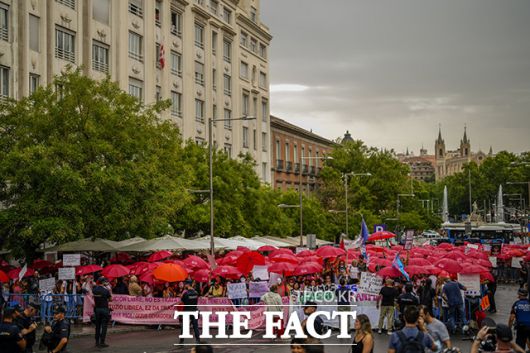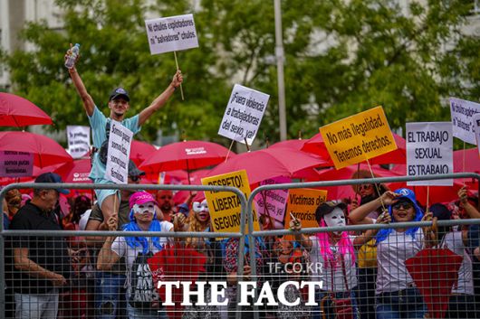 1995년 이후 성매매가 합법화 된 스페인에서 최근 성 산업에 대한 철퇴 시도가 진행 중에 있다. 특히 스페인 의회에서 성매매 업주와 구매자들에게 최고 4년 형을 처하게 하는 등의 내용이 담긴 '성매매 근절법' 입법을 추진하자, 일각에서는 '성 노동자들에 대한 폭력을 멈춰라, 당장'이라며 처벌 반대 목소리를 내고 있다. /마드리드=AP.뉴시스 |