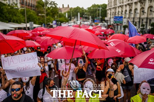 [더팩트|이선화 기자] 12일(현지시간) 스페인 마드리드의 의회 앞에서 열린 성매매 알선 포주에 대한 처벌을 강화하는 등의 내용이 담긴 성매매 근절법 반대 시위가 열린 가운데 시위 참가자들이 피켓을 들고 처벌 반대를 요구하고 있다.