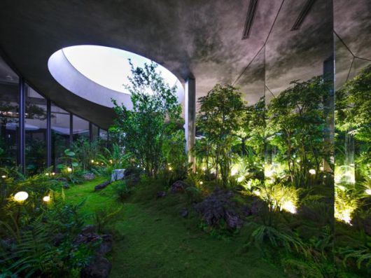 아파트 브랜드 '드파인'의 모델하우스 격인 드파인 갤러리에는 천장이 뚫린 작은 숲이 조성돼 있다. SK에코플랜트 제공 |