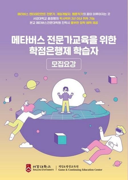 서강대학교 게임&평생교육원은 15일 게임 및 메타버스(3차원 가상 세계) 인재를 육성하기 위한 신입생을 모집한다고 밝혔다.
