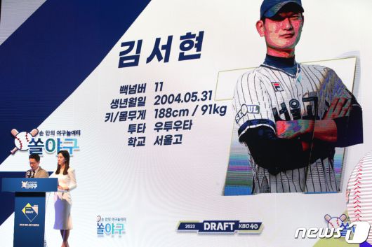 (서울=뉴스1) 문대현 기자 = 한화 이글스가 프로야구 신인 드래프트에서 투수 김서현(서울고)을 1순위로 지명했다. 과거 학교폭력 이력으로 논란을 빚었던 김유성(고려대)은 두산이 품었다.