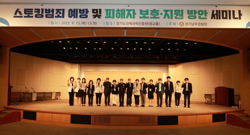 (수원=연합뉴스) 강영훈 기자 = 경기남부경찰청은 15일 수원시 영통구 경기도 경제과학진흥원에서 '스토킹 범죄 예방 및 피해자 보호·지원 방안'을 주제로 세미나를 개최했다.