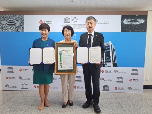 (광주=연합뉴스) 손상원 기자 = 미국 캘리포니아주 의회의 5·18 기념일 제정 결의안 원본이 광주로 넘어왔다.