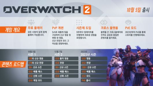 블리자드엔터테인먼트의 하이퍼 FPS 게임 '오버워치2'가 10월 5일 글로벌 출시를 앞두고 있다. 서비스 6년 만의 전격 무료(F2P) 서비스를 통한 배틀 패스 시스템 도입, 9주 간격의 시즌 업데이트 등으로 세계 최고의 라이브 서비스 퀄리티를 자신했다.