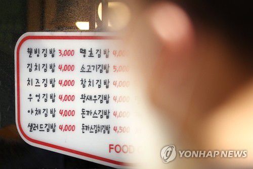 외식비 지속 상승..김밥 평균가격 3천원 넘어 |