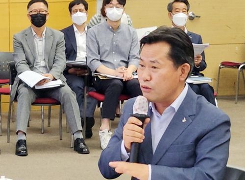 (부여=연합뉴스) 이은파 기자 = 박정현 충남 부여군수는 16일 천안시청에서 열린 민선 8기 충남시장군수협의회(회장 박상돈 천안시장) 1차 회의에 참석, 자연재해로 인한 사유 시설 피해에 대한 재난지원금 지원 현실화를 촉구했다.