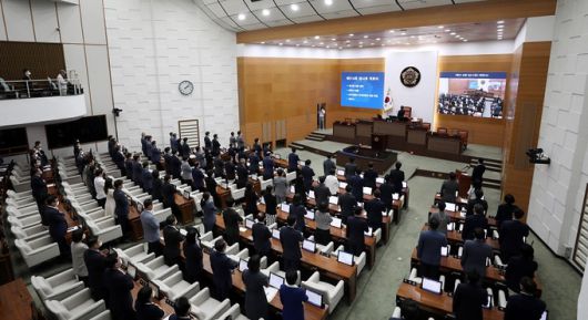 지난 14일 오후 서울 중구 서울시의회에서 제314회 임시회 개회식이 열리고 있다. 뉴시스 |