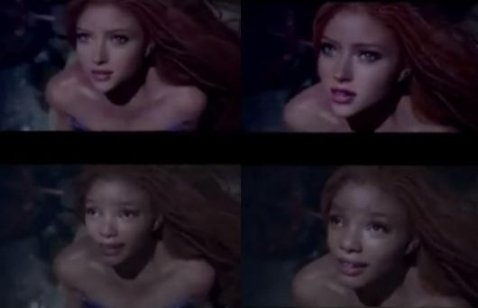 영상에는 인어공주의 주인공 에리얼 역을 맡은 배우 할리 베일리의 모습과 함께 그녀를 AI 기술로 보정해 백인 여성으로 바꾼 모습이 함께 담겼다.